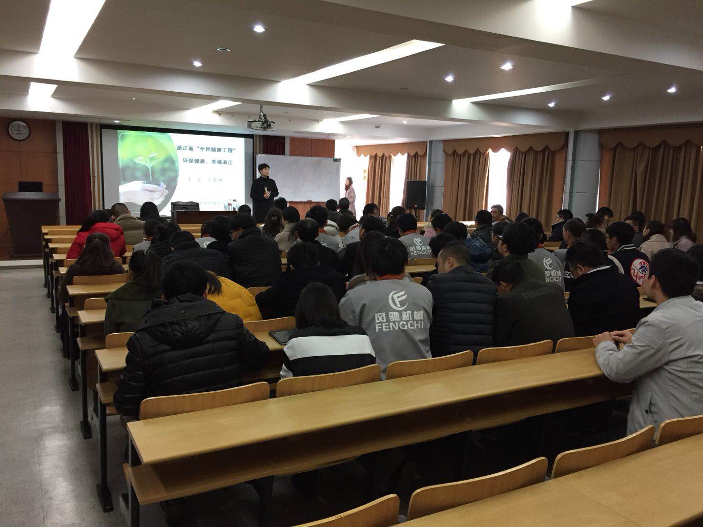 2018年1月17日浙江新生活環(huán)境保護(hù)宣教中心走進(jìn)風(fēng)馳進(jìn)行有關(guān)全民環(huán)保健康,共創(chuàng)美麗浙江的宣講活動,宣傳內(nèi)容為環(huán)保衛(wèi)生,垃圾分類,職工亞健康。
