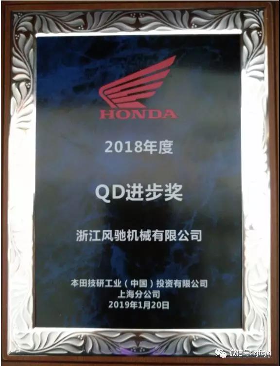2019年1月榮獲本田頒發(fā)的“QD進步獎”
