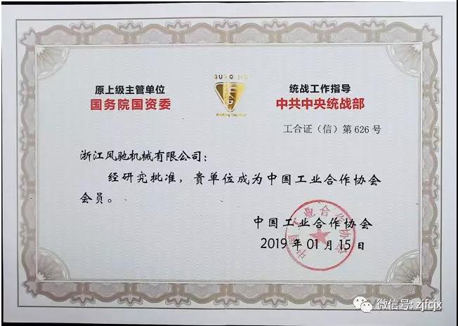 2019年1月榮獲中國工業(yè)合作協(xié)會頒發(fā)的“2019中國工業(yè)合作協(xié)會會員”