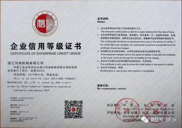 2019年1月榮獲中國工業(yè)合作協(xié)會頒發(fā)的“企業(yè)信用等級證書”