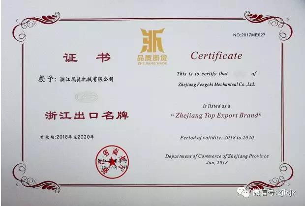 2018年1月榮獲浙江省商務廳頒發(fā)的“浙江出口名牌”